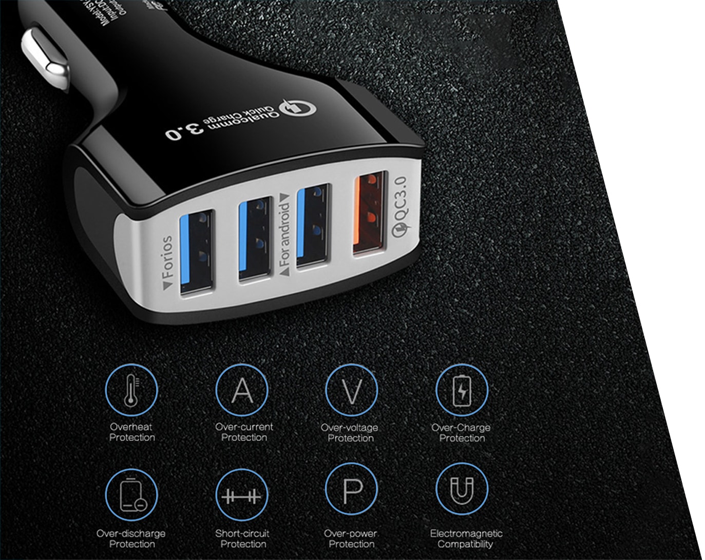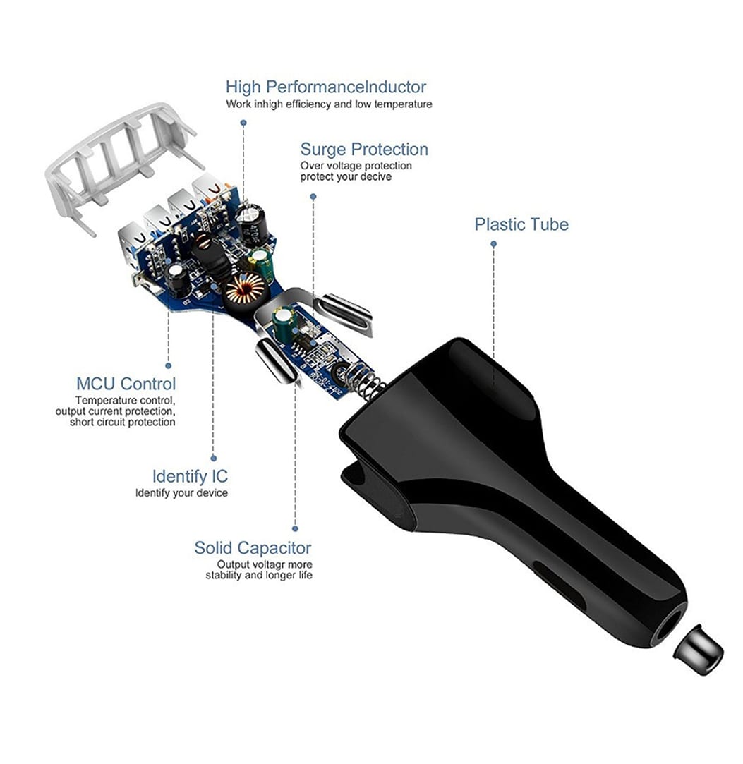 Eight Protection Intelligent Chip: Irusu Fast Car Charger has an intelligent Chip which protects your device from over charge,short-circuit,over-current,critical-voltage,over- temperature, over load, voltage detection, over voltage.